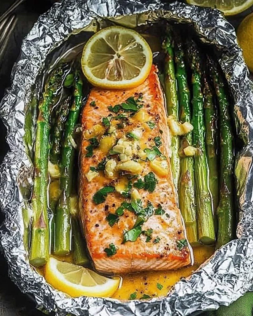 Gebackener Lachs in Folie mit Spargel- und Zitronen-Knoblauch-Butter-Sauce Zutaten Für den Lachs und Spargel: 4 Lachsfilets (je ca. 150–200 g) 500 g grüner Spargel, Enden entfernt 2 EL Olivenöl Salz und Pfeffer nach Geschmack Für die Zitronen-Knoblauch-Butter-Sauce: 100 g Butter, geschmolzen Saft und Abrieb von 1 Zitrone 2 Knoblauchzehen, fein gehackt 1 TL Honig oder … Read more