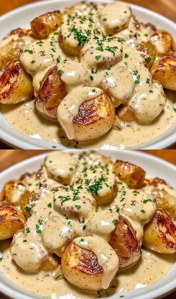 Sooo lecker dass ich es 3x die Woche koche, Kartoffeln in Knoblauch Sahnesauce fertig in paar Minuten!
