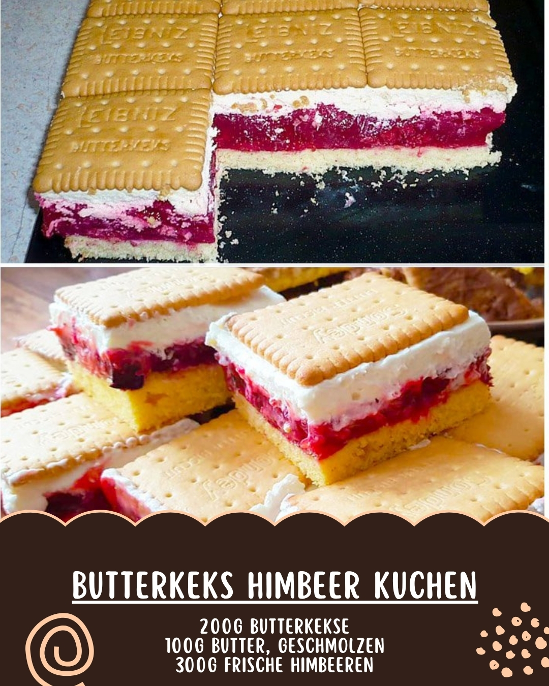 Zutaten200g Butterkekse100g Butter, geschmolzen300g frische Himbeeren500g Frischkäse200g Sahne100g Zucker1 Päckchen Vanillezucker1 Päckchen GelatineSaft einer ZitroneZubereitung