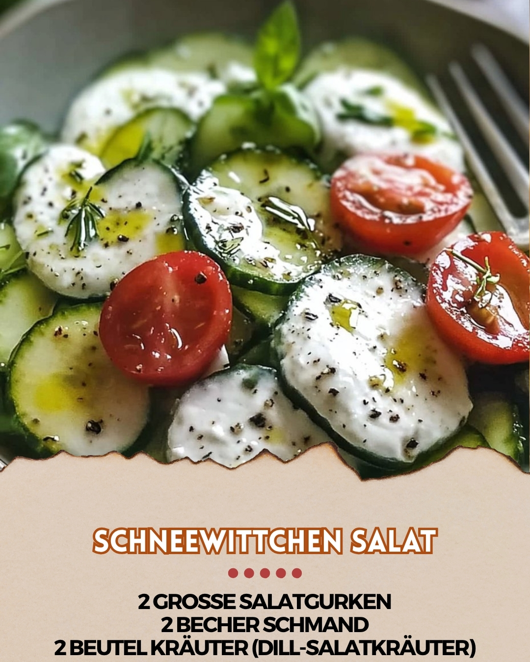 Zutaten2 große Salatgurken2 Becher Schmand2 Beutel Dill-Salatkräuteretwas Salzetwas Pfeffer2 EL Olivenöl (gestrichen)Zubereitung