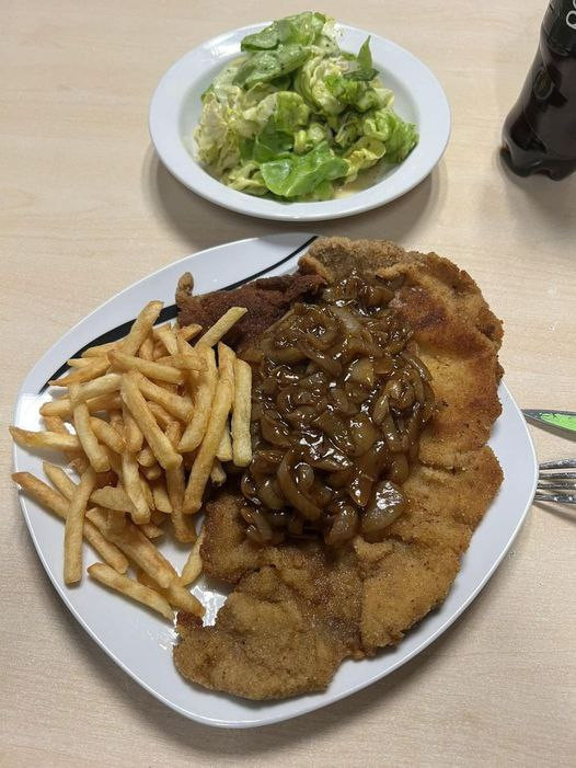 Zutaten: Kalbsschnitzel (bei Bedarf können Sie auch Schweine- oder Hühnerfleisch verwenden) Salz und Pfeffer nach Geschmack Allzweckmehl zum Baggern Eier, geschlagen Semmelbrösel Pflanzenöl oder Butterschmalz zum Braten Zitronenschnitze zum Servieren Das Rezept wird auf der nächsten Seite fortgesetzt Das Rezept wird auf der nächsten Seite fortgesetzt 👇👇