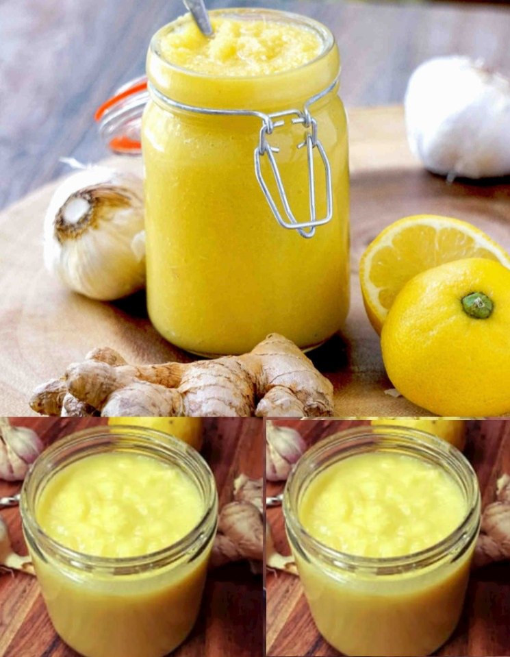 geriebener Ingwer, Zwiebel, Knoblauch, Zitronensaft und Honig. Ein Teelöffel pro Tag
